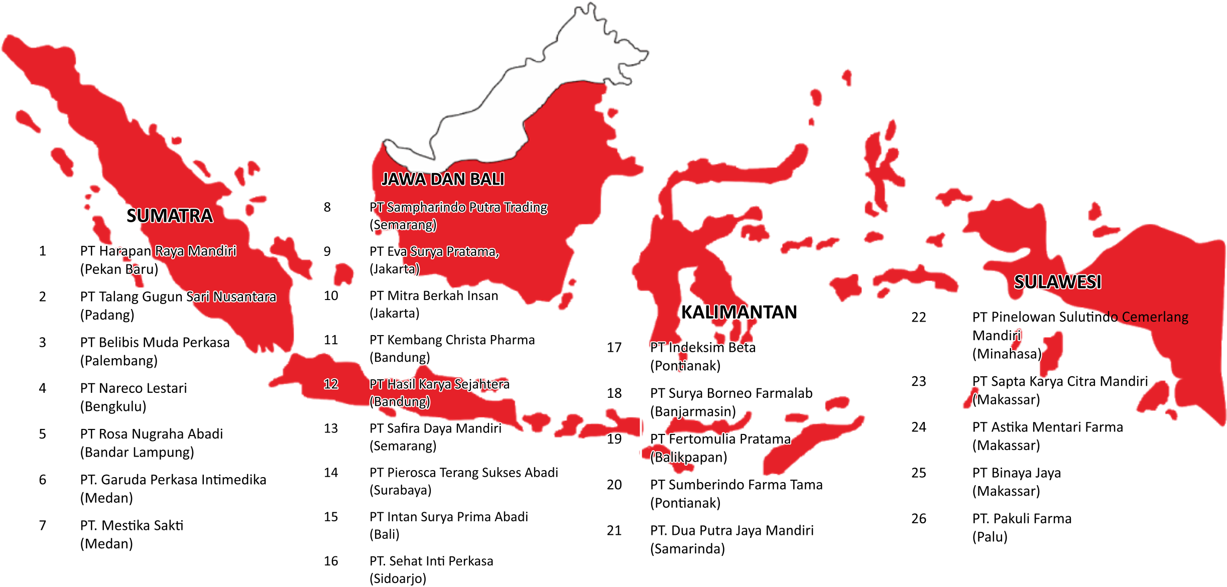 Indonesia is a breathtaking archipelago laid on equator from east to west and has 272 million population in 2021. Government program reach “Indonesia Sehat” free from many chronica diseases. Heading to “Indonesia Sehat” need medical supporting like medicines, which PT. Sampharindo Putra Trading oblige guarantee availability of our products through out Indonesia. PT. Sampharindo Putra Trading has business partner distributing our products into nation.